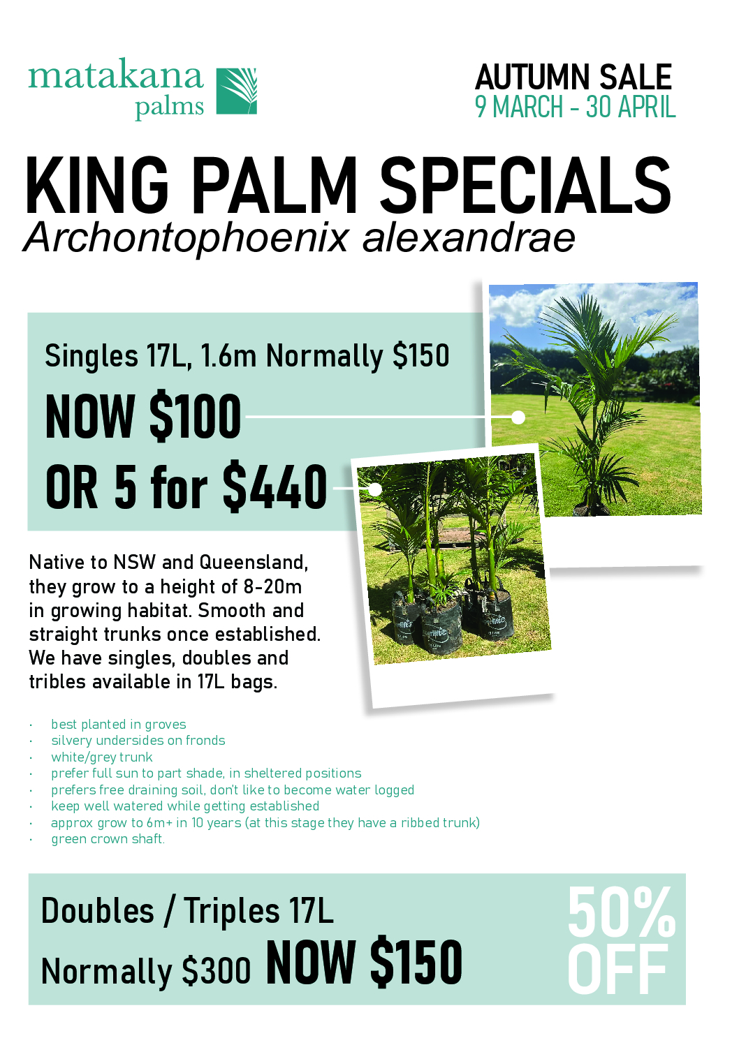 - grow to 6m+ in 10 years (at this stage they have a ribbed trunk)